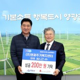 영광군은 지난 12일 (주)영광주거복지센터(대표 김근수)에서 이웃돕기 성금 200만 원